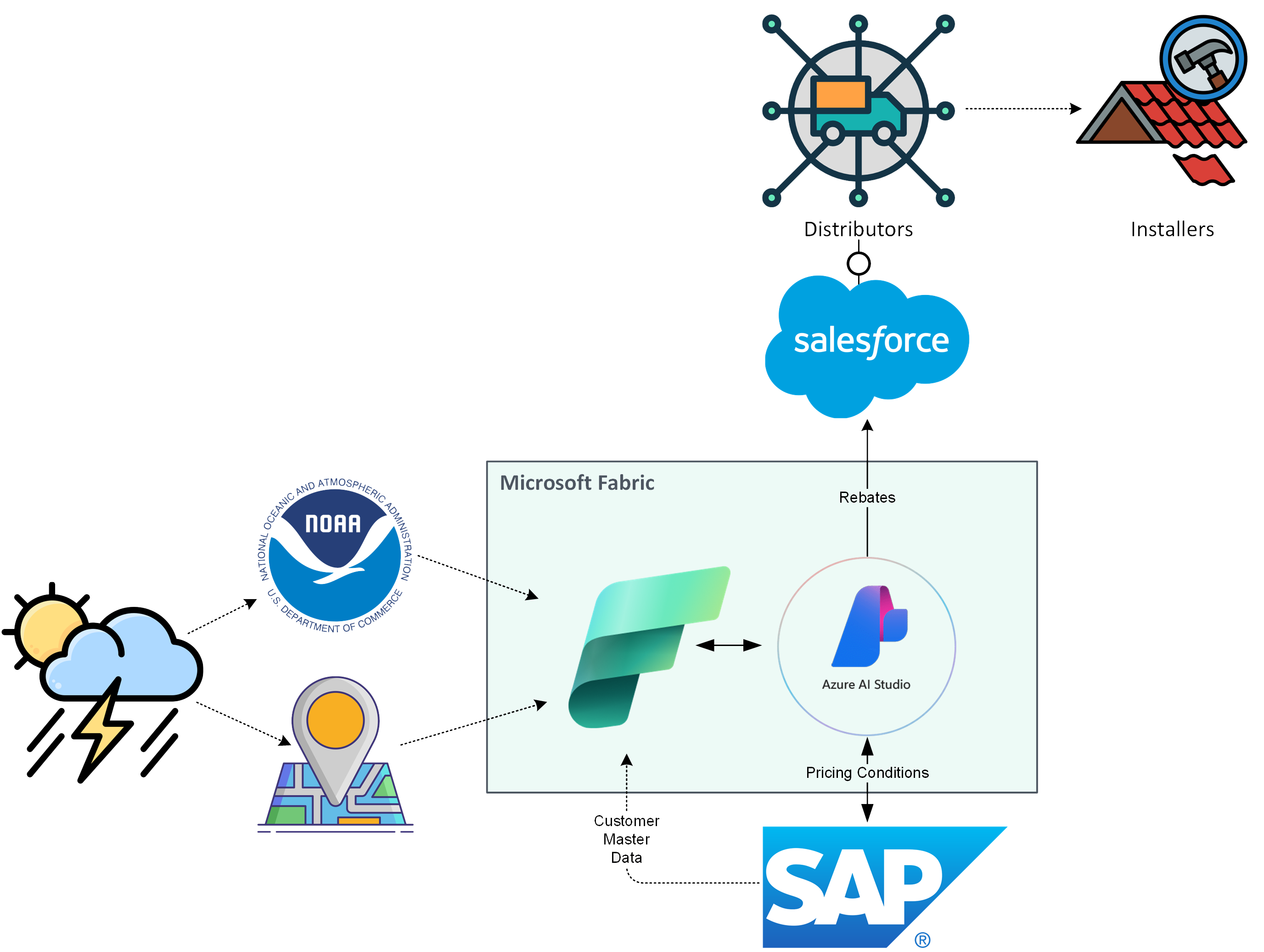 Take a manufacturer of construction materials as an example. Their ERP system contains rich sales history and product data, while their CRM holds customer and distributor demographics. On their own, these systems can tell you who buys what and when. However, they probably can't tell you why demand spikes in some regions and lags in others. By bringing in freely available weather data from the National Oceanic and Atmospheric Administration (NOAA) and blending it with their sales and customer data inside Microsoft Fabric, we can start to run data science experiments that reveal deeper and more intricate patterns.
