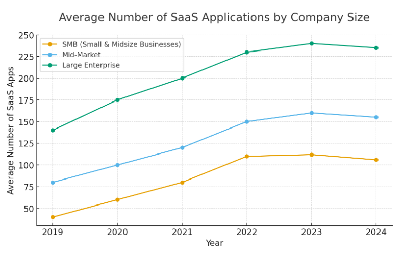 Figure 1: Average Number of SaaS Applications Used in Organizations