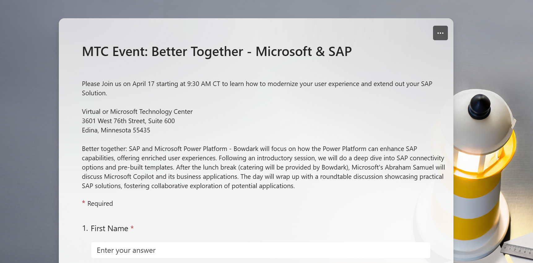A simple, but frequently overlooked tool is Microsoft Forms. As the product name suggests, Forms is a web-based tool that you can use to build all kinds of forms: