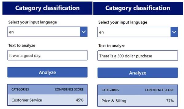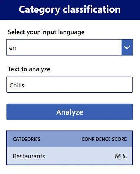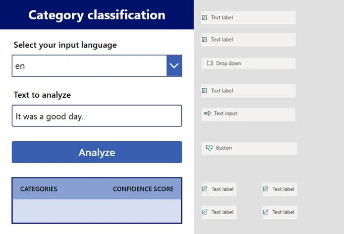 We have now added the functionality to our app and can begin to see how it will analyze and categorize our inputs. Click the Play button after you have saved and published to try out your app.