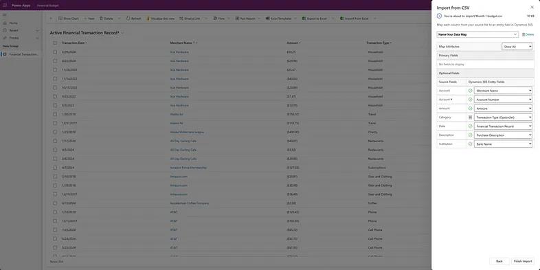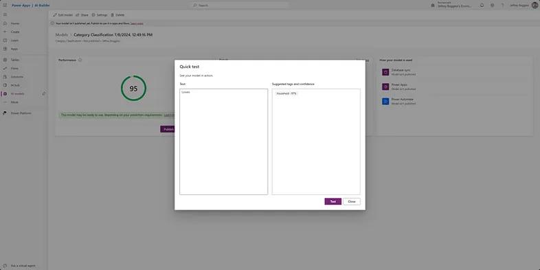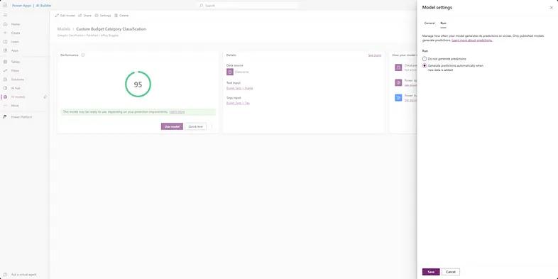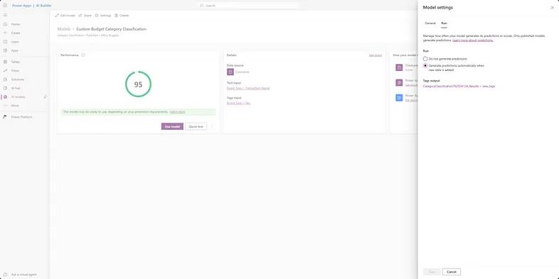 Now that we see our model working in our Canvas App to categorize transactions as we’ve trained it, our model will be ready to be used in other applications.When we look at the simple creation of a Model Driven App, we can see how by selecting “improve data via import” our model can be better trained with each new import of data by selecting the setting in Figure 24.