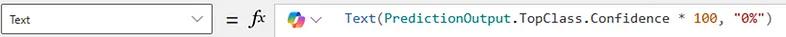 Select the text label Confidence below the button and set the following for Text. This accesses the Confidence Function retrieving a confidence level for the prediction from 0–1 then converting it to percentage.