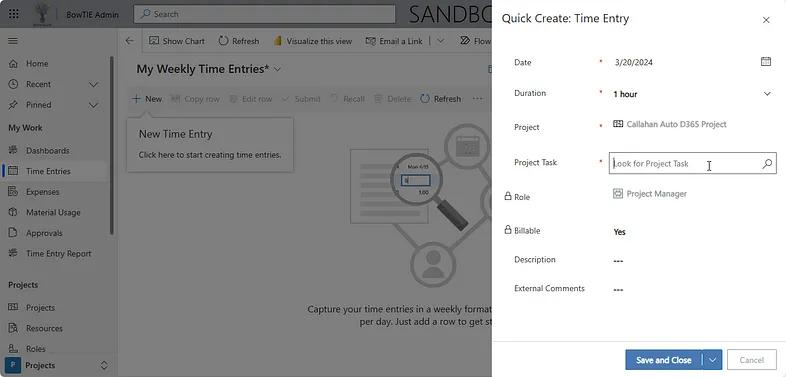 Figure 4: Entering Time & Expenses in D365 Project Operations