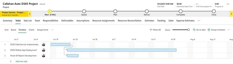 One of the benefits of building project plans this way is that you can start generic during the up-front sales cycle and then firm up details as the deal matures. For example, when building a quote, we can create a project plan that points to generic resources (operating within specific resource roles). This gives D365 Project Operations enough information to pull an estimate together during the quoting process and also provides flexibility to the sales and delivery teams that are (incrementally) building out the estimates.