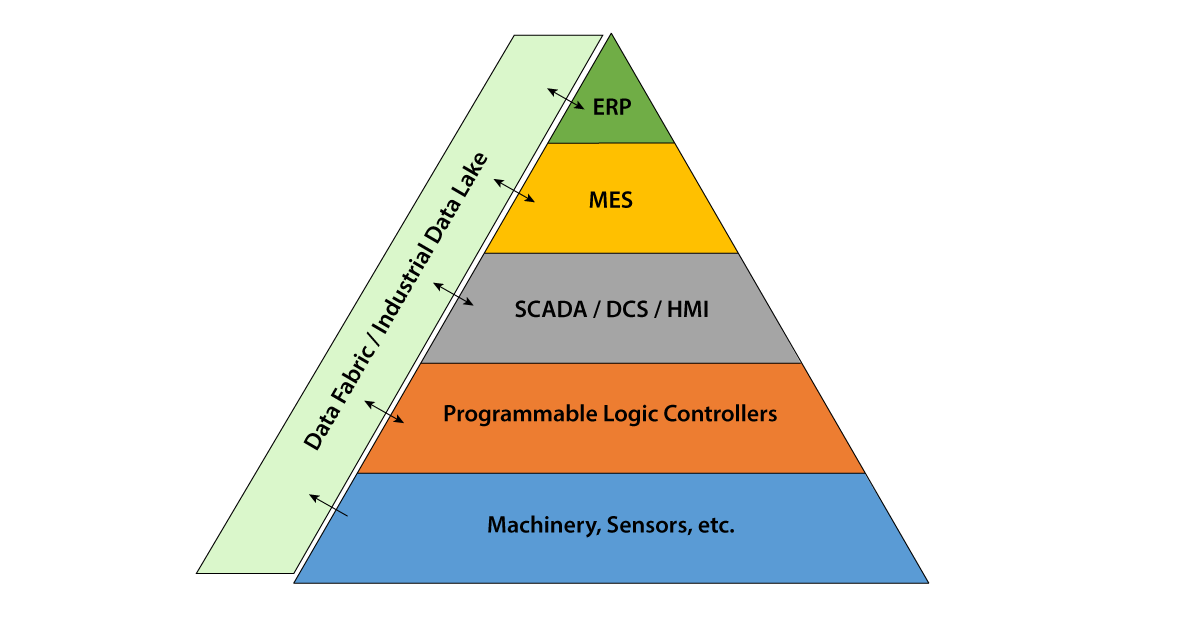 Figure 1 below illustrates the positioning of a data fabric within the context of the classic ISA-95 reference architecture. Rather than forcing ERP and MES/SCADA platforms into brittle, point-to-point conversations, a data fabric introduces a common, governed foundation where information can be harmonized, enriched, and shared across the enterprise.