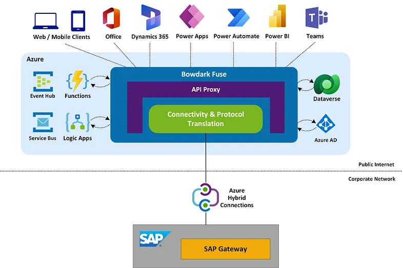 The architecture diagram contained in Figure 1 below illustrates the positioning of Fuse within a typical customer IT landscape. Currently, Fuse is hosted on your Microsoft Azure cloud tenant account, although we are exploring options to port it to run on AWS and GCP environments, too. Once deployed to the Azure cloud, Fuse securely connects to your SAP backend systems using Azure Hybrid Connections technology. Much like the SAP Cloud Connector used within the SAP Business Technology Platform (SAP BTP), Azure Hybrid Connections enables you to facilitate a secure connection/relay between Azure and your on-premises SAP system(s) without requiring you to open up holes in your corporate firewall.