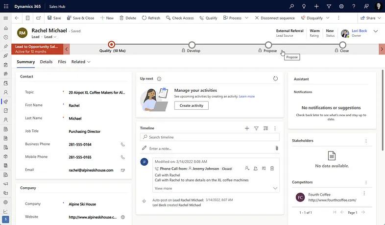 Figure 3: Managing a Lead in Dynamics 365 Sales