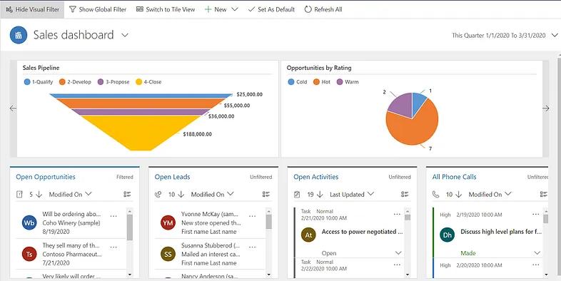 In terms of user experience (UX), D365 Sales is designed to provide sales team members with all relevant information at their fingertips. The journey starts with dashboards like the one shown in Figure 1. Here, sales team members are presented with an overview of the sales pipeline, open opportunities, and so forth.