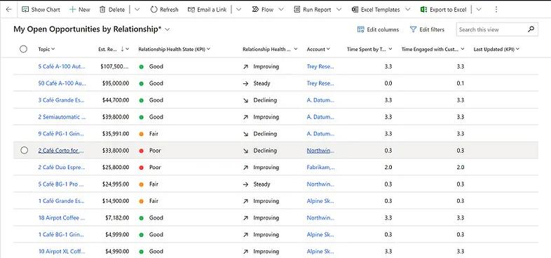 Figure 6: Monitoring Relationship Health in Dynamics 365 Sales