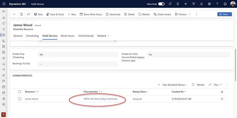 Frontline workers (both internal and external), crews, and equipment are managed in D365 as bookable resources. In addition to basic properties (e.g., name, contact information, etc.), bookable resource records are also used to track: