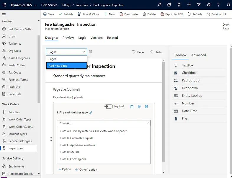 One of the more powerful features of D365 Field Service is its flexible inspections module. As you can see in Figure 5, Microsoft provides a drag-and-drop designer tool that you can use to build dynamic inspection forms complete with business rules (e.g., “if this, then that”) that come together like questionnaires.