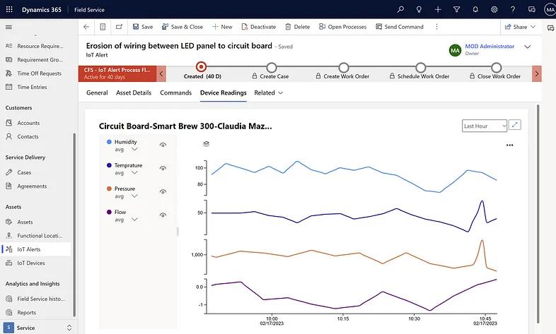 Within D365 Field Service, you can configure alerts that monitor IoT sensor readings and trigger workflows whenever certain thresholds are met. You can also mine that data to perform trending analysis, anomaly detection, etc. in Power BI (see Figure 10).