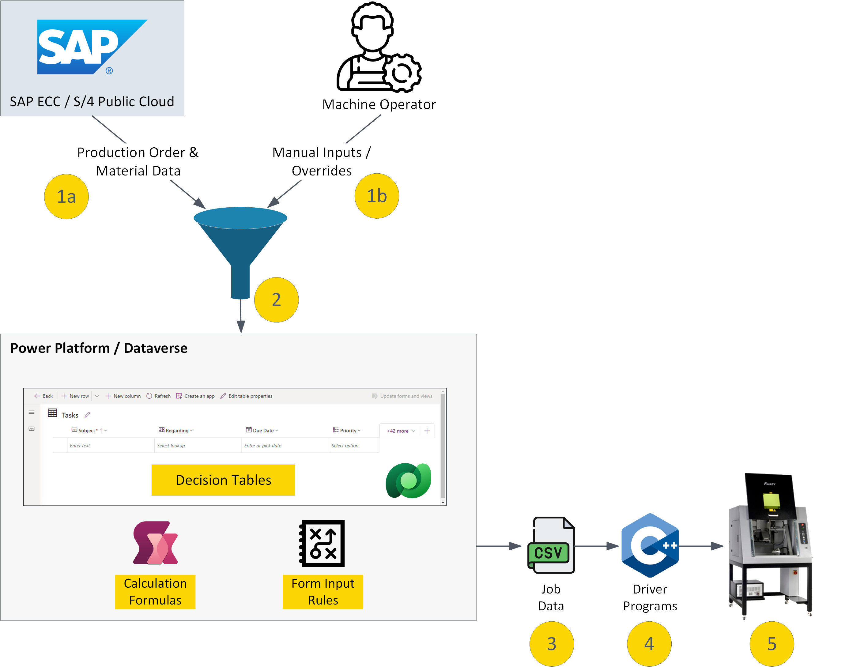 Building on the Power Automate-based integration hub, we can take our solution to the next level by pairing it with a centralized rules engine powered by Microsoft Dataverse. While the integration hub promotes seamless connectivity and data flow across systems, Dataverse provides the foundation for defining and enforcing the business rules that drive consistency and accuracy in manufacturing processes.